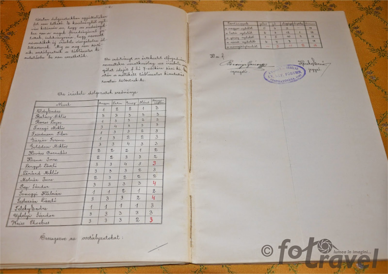 mai păstrează catalogul care consemnează subiectele propuse și calificativele